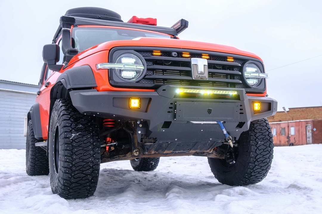 Бампер оснащен мощными упорами под реечный домкрат и буксирными проушинами для работы с рывковой или буксировочной стропой. Тщательно продуманная конструкция внутренних усилителей обеспечивают максимальную надежность бампера, стойкость к высоким нагрузкам и сильным ударам.