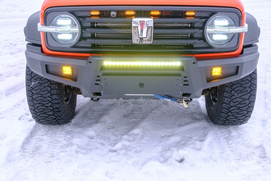 В бампер интегрирована площадка для лебедки. Оптимальной является лебедка с тяговым усилием 4100-4300 кг. Но бампер позволяет установить и более мощную лебедку с тяговым усилием 5400 кг.