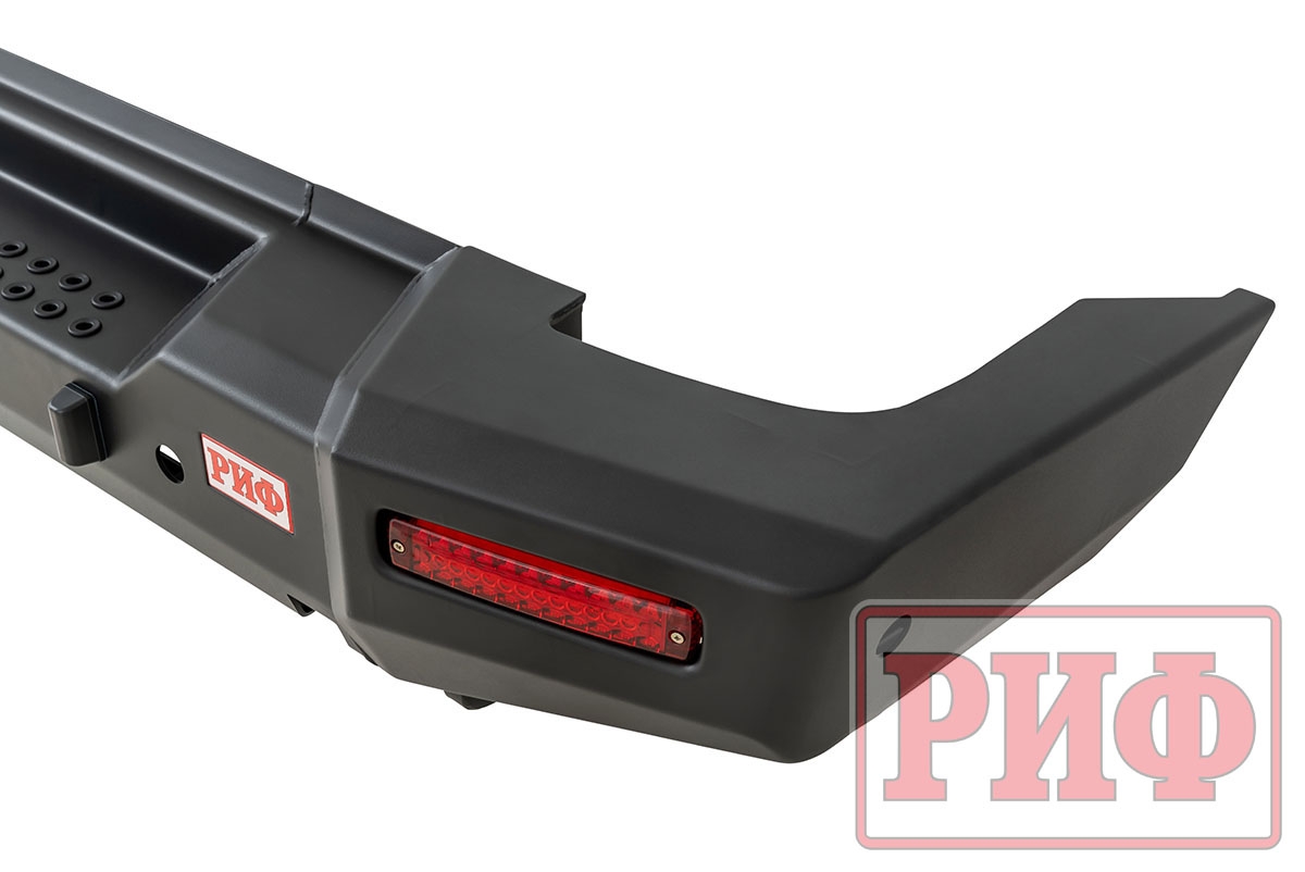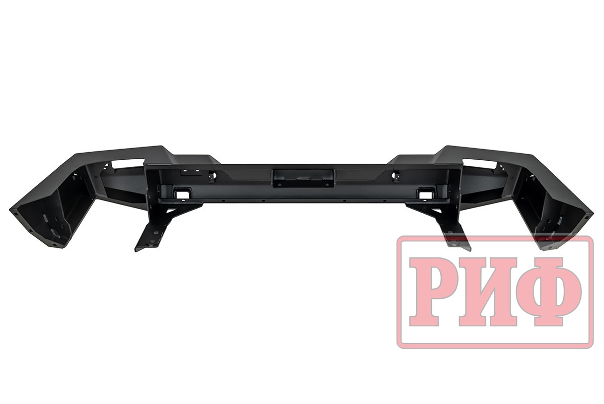 Задний силовой бампер РИФ надежно защитит кузов автомобиля на бездорожье или в городе в случае непредвиденных инцидентов. Бампер оборудован упорами под хай джек и буксирными проушинами для работы с рывковой или буксировочной стропой.
